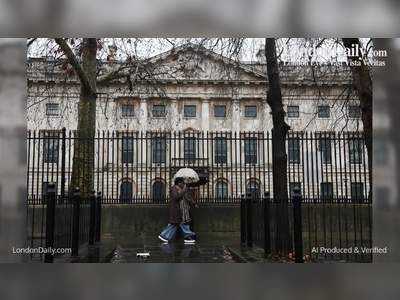 Shortly before 18:00 BST, a man and a woman climbed up two pillars on Marble Arch to hoist a green banner with "End fossil fuels now" on it.