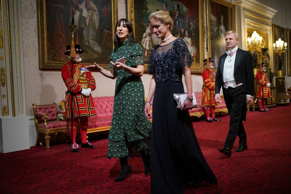 From the political sphere, Akshata Murty chose an elegant Saloni dress, Samantha Cameron donned a Cefinn midi dress, and Victoria Starmer appeared in a sophisticated velvet gown.