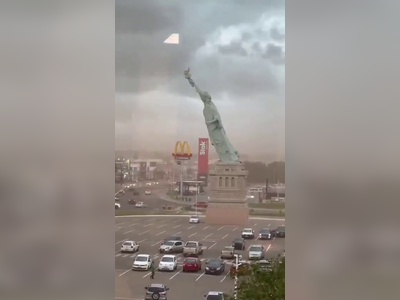 Replica of the Statue of Liberty topples due to strong winds in Guaíba, Brazil